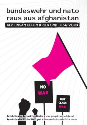 Eine in diesen Tagen erschienene 20seitige Broschüre1 soll Hintergrundinformationen zum Krieg in Afghanistan liefern und mit der Propaganda des "humanitären Krieges" aufräumen. Sie ist kostenlos bundesweit in verschiedenen Infoläden und linken Zentren erhältlich. Sie kann bei der "Revolutionären Perspektive Berlin" oder bei der "Revolutionären Aktion Stuttgart" bestellt werden.Die Broschüre besteht aus folgenden Artikeln: